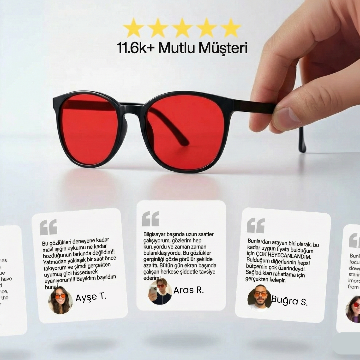 Kırmızı lens filtreleri, cihazlarınızın yaydığı kısa dalga boylu ışığı engelleyerek göz yorgunluğunu azaltır, daha derin uykuya dalmanızı sağlar ve enerjinizi yüksek tutar.
